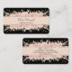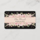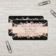 This is a very elegant, professional business card for her that really grabs attention! A top and bottom border of pale pink roses and soft green leaves frames your custom text at the center. The text is placed on a pale pink banner that is lined with pink faux glitter to add sparkle. Everything is placed on a dramatic black background. The back of the card has the same floral border image, with more custom text fields at the center. Stunning!