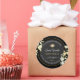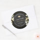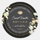 Make a lasting impression with this elegant floral design featuring a round gold frame with pretty flowers on a black and grey background.