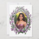 This elegant quinceanera invitation has pink and purple flowers around a frame, a gold tiara crown, and a white background with a personalizable template and photo on the back to create your own design. The invitation template is customizable in the listing editor and is also available as a digital download that's printable after you personalize it. This design would be nice for an enchanted garden themed Quince.