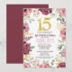 Celebrate your special day with our beautifully designed Quinceañera invitation template. Featuring an elegant gold number "15" and surrounded by exquisite floral arrangements in shades of pink and burgundy, this invitation sets the perfect tone for a memorable quinceañera celebration. The high-quality design ensures a sophisticated look that will impress your guests and make your event unforgettable