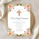 Elegant Floral Religious Cross First Communion Invitation