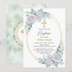 Elegant Floral Rose Gold Cross Baptism Invitation