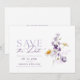 Announce your special day with this elegant "Save the Date" card featuring delicate watercolor florals in purple and ivory tones. Perfect for romantic and timeless wedding themes. Personalizable details.