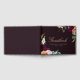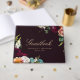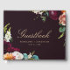 For your wedding reception this elegant custom floral wedding guestbook features faux gold script with your names and wedding date to personalise on a dark burgundy background bordered with flowers of red, peach and white. Designed by Susan Coffey.