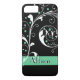 Elegant floral scroll leaf black mint green Case-Mate iPhone case