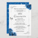Elegant Floral Silver Royal Blue Quinceanera Photo Invitation