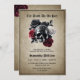 This design feathers a gothic Halloween theme "TILL DEATH DO US PART" floral skull with red black and white flowers around it on a old textured background. This card is easily editable with your personal details.
