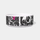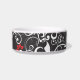 This is a heavy, durable bowl decorated with Tibbies of many colors, the perfect size for hungry/thirsty Tibs. The design is interesting and printing clear.
