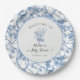Elegant Floral Toile Blue and White Baby Shower Paper Plate