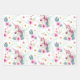 Watercolor floral pattern wrapping paper in accents of pink and coral featuring a stylish unicorn.