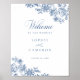 Elegant Floral Vintage Blue Wedding Welcome Poster