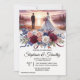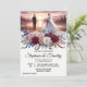 Elegant Floral Wedding Invitation with Bride and Groom at a Lake and Rose gold, Burgubdy and White Roses