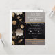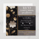 This luxurious wedding invitation design features a sophisticated black background adorned with delicate floral arrangements. The intricate white, grey, and golden flowers elegantly frame the invitation, creating a refined and timeless aesthetic. The golden border adds a touch of opulence, making it perfect for high-end wedding décor and invitation displays. Ideal for cross-selling wedding accessories, stationery, and décor elements, this elegant design serves as a versatile template for wedding-themed items. Its classic yet modern floral motifs provide a stunning backdrop for personalized text, enhancing both wedding invitations and event decorations.