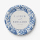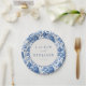 This is a classic style image featuring an elegant wedding invitation surrounded by intricate blue floral patterns. The design exudes sophistication and charm with its detailed botanical illustrations in shades of blue on a white background, creating a serene and romantic atmosphere. Perfect for setting the tone for a beautiful celebration, this invitation inspires feelings of timeless elegance and joy.