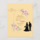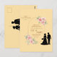 This customisable wedding invitation design features soft pink florals, a romantic couple silhouette, and luxurious typography – all set against a warm, creamy background. Perfect for announcing your big day with grace and class.
