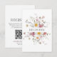 A beautifully designed wedding registry card featuring a clean white background and delicate floral arrangements. This elegant card includes a QR code and website link for easy access to wedding details, schedule, and gift registry information. Perfect for adding a stylish and functional touch to your wedding stationery.