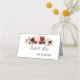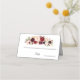 Wedding table place card, features red and white and purple flower, with green tree leaves, add the personalisation, the name of the couple, and the date of the wedding, by clicking on the Personalisation link.