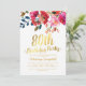 Elegant eightieth birthday party invitations featuring a classic white background, watercolor floral display, a stylish faux gold foil typographic title and a modern birthday celebration template.