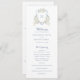 Elegant Floral White Greenery Crest Monogram Wedding Program. Traditional Wedding Order of Service. Watercolor Dusty Blue Wedding Monogram Crest Program