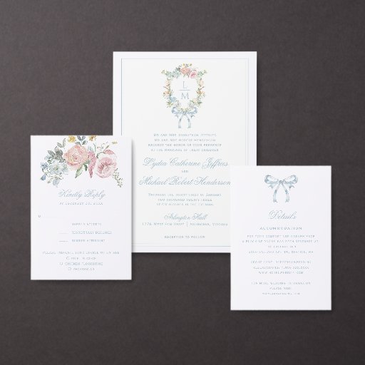The watercolor floral monogram wreath crest gives this invitation sticker a beautiful and timeless look that any sophisticated bride will love. Personalise this sticker with your initials inside the crest at the top.