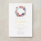 Elegant Floral Wreath Cross Girl Baptism Gold Foil Invitation.