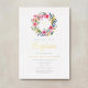 Elegant Floral Wreath Girl Baptism Gold Foil Invitation.