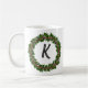 Elegant Floral Wreath Monogram Initial Christmas Coffee Mug