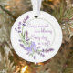 This beautiful ornament has an elegant floral wreath with purple flowers and bow against a white background, and the words Every moment is a blessing Every day is a gift.