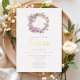 Elegant Floral Wreath Religious Girl Baptism Gold Foil Invitation.
