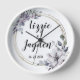On this stylish wall clock is an elegant chic gold lavender floral wreath where you can personalise it creating romantic elegance. Part of the Stylish Trendy Wedding Gifts Collection