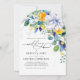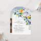 Elegant floral yellow blue wedding arched photo invitation
