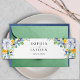A radiant colourful wedding invitations belly bands with beautiful watercolor green botanical foliage and eucalyptus leaves and sunny elegant yellow white flowers. Complete your wedding invitations with this elegant floral yellow, white, and blue monogram invitation belly band. Featuring a sophisticated design adorned with delicate yellow blooms, soft white florals, and subtle blue accents, this belly band adds a refined and stylish touch to your wedding suite. The personalised monogram detail enhances its timeless charm, creating a beautifully coordinated look. Perfect for spring and summer weddings, garden celebrations, or countryside venues, this belly band elegantly wraps around your invitations, keeping all enclosures neatly in place while adding a touch of romance and sophistication.