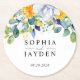 Elegant floral yellow white blue wedding round paper coaster