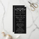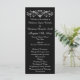 Elegant Flourish Black and White Vertical Wedding Programs with a fancy flourish scroll with heart at the top in white and modern fancy script lettering. This is a 4" x 9" vertical two sided wedding program. Just use the template fields to add your own wedding ceremony details or use the "Customise It" button to add or delete lines of text or move things around.