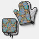 Elegant Flower Blue Periwinkle Floral Classic Oven Mitt & Pot Holder Set