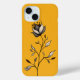 Elegant flower iPhone case with an abstract artwork in warm yellow, grey and black colours drawn in digital ink.