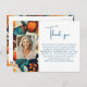 Elegant Flower Foliage Pattern Photo Birthday Thank You Postcard. Beautiful floral pattern in dark turquoise and orange colours with a custom photo. Add your thank you note and your photo.