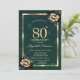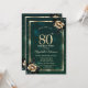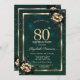 Elegant Flower Gold Frame Stars Green 80th Invitation