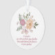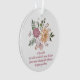 This elegant ornament perfect for a best friend who accepts you for who you are has a beautiful bouquet of flowers, berries and leaves against a white background and a lovely friendship quote by an unknown person in a pink font: A friend is one who overlooks your broken fence and admires the flowers in your garden.