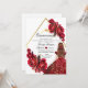 Modern stylish Quinceanera black red and gold 15th birthday invitation with beautiful rose and gold dust on with a gold ink pour effect (the gold is a digital effect, not real foil!) and modern calligraphy. Classy Quinceanera and elegant script and chic flowers print birthday invitation.