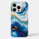 Elegant Fluid Art iPhone 16 Case – Abstract Blue White Gold Swirls, Modern Liquid Painting Style, Artistic Protective Phone Cover, Stylish Tech Accessories
