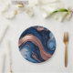 Elegant Fluid Art with Copper and Blue Swirls Paper Plate