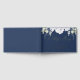 Elegant In Loving Memory, Funeral / Celebration of Life blue guestbook, with real foil text details in both front and spine, hardcover with a soft blue velvety texture, exquisite modern calligraphy details, and white floral border. Choose from three size options and three foil colours: gold, silver, or rose gold.