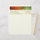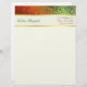Lovely and professional looking letterhead paper done in cream, with graphics of a gradient green to orange coloured foil, at the top. A cream coloured stripe, with gold tone borders sits under the foil decorative top. Green and brown text, on the stripe, is ready to personalise for yourself or your business.