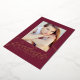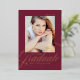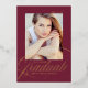 Celebrate your high school or college graduate’s achievement with this elegant photo graduation announcement, featuring a deep maroon background and "Graduate" in shimmering gold foil modern calligraphy. Personalise it with their senior photo, name, school, and graduation year for a unique and memorable touch. The back of the announcement features a stylish maroon and white trellis pattern, adding a sophisticated flair. Perfect for sharing this special milestone with family and friends, this custom graduation announcement blends modern elegance with timeless charm.