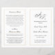 This program is an 8.5 x 11 page that requires you to fold it to assemble. The gold border is editable in thickness, size and color. Classic understated black and white wedding program with a modern touch featuring the elegant script of a custom monogram. S and R