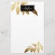 Here's a lovely, option for your home office stationery. The design features your monogram initial in white together with your first or last name over black. This information is complemented by a faux gold foil botanical leaf foliage at the top and bottom of the of the paper. Quite an elegant, trendy look. If you have a design question or would like to see this design on another product, please feel free to contact me at jschmidtdesignworks@gmail.com. Design © Judith Schmidt.