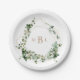 Wedding Paper Plate. Foliage and Gold monogram. Custom. White background. Eucalyptus & Ivy.