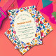 A pink and yellow mexican floral Fiesta baby shower party invitation featuring watercolor flowers celebrating Cinco de Mayo day with maracas, and a sombrero. A cute and colorful Mexican floral art with script typography is perfect for celebrating the baby shower in a folk style.