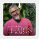Beautiful minimal and modern forever in our hearts photo christmas ornament. Simple and modern design with a full photo template. Customise this gift with your special photo and name. The photo has an overlay at the bottom to help the elegant white typography "HEARTS" stand out. Perfect keepsake ornament to remember our loved ones.